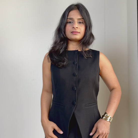 - Neckline: Round neckline for a minimal, modern look that layers easily over shirts or can be worn on its own.
