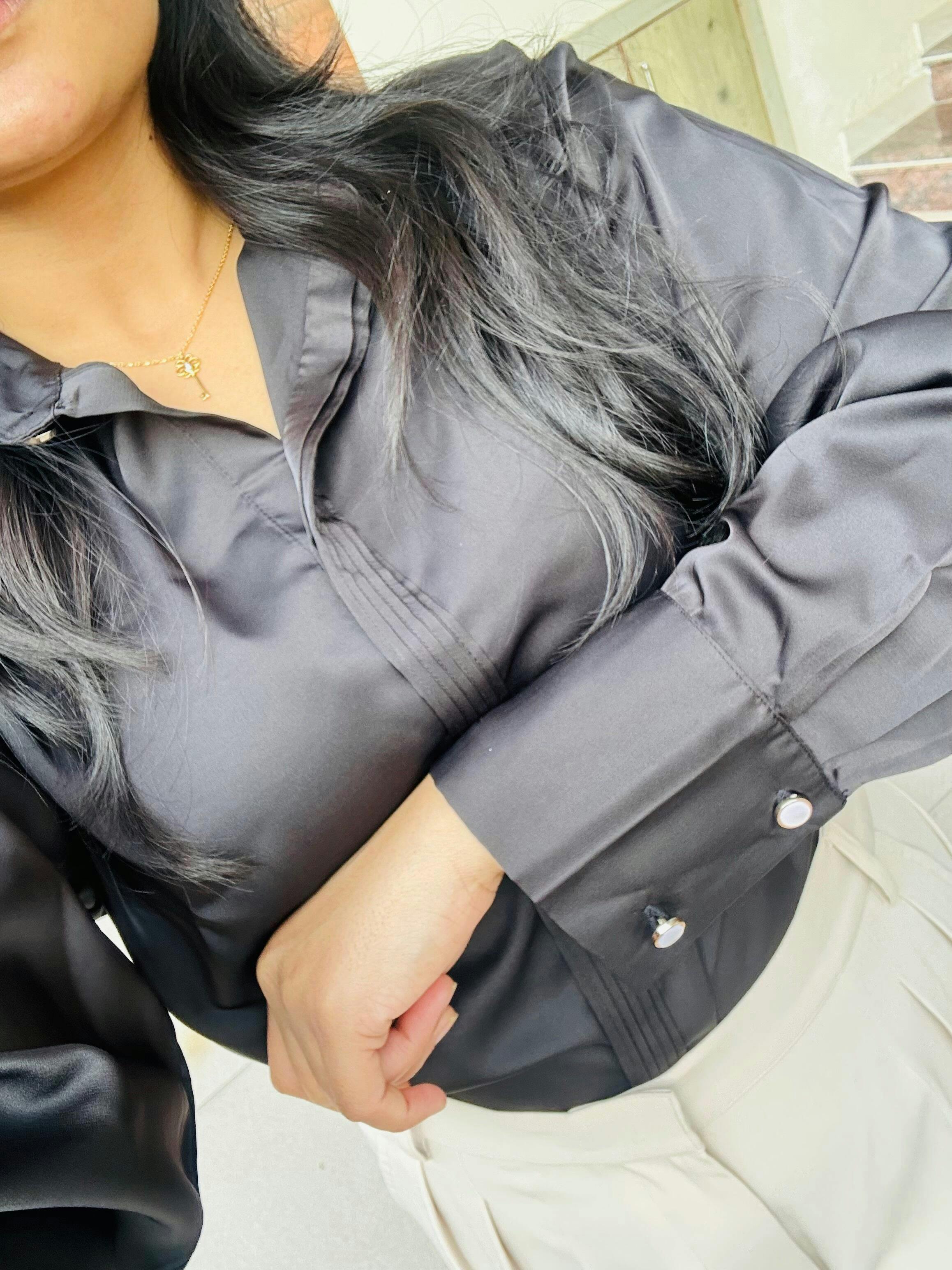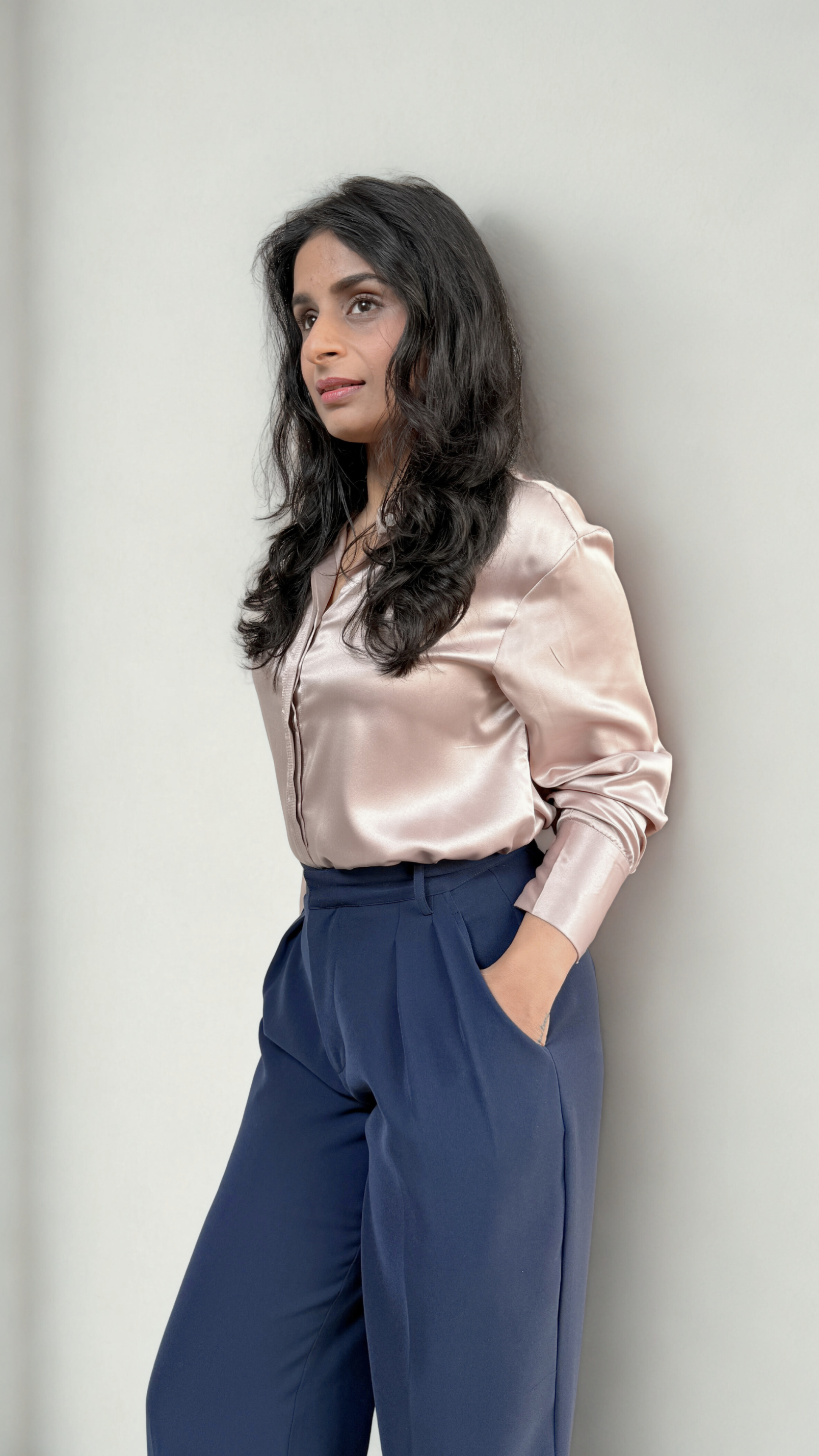 Butter Satin Oversized Pintuck Shirt | Rose Gold