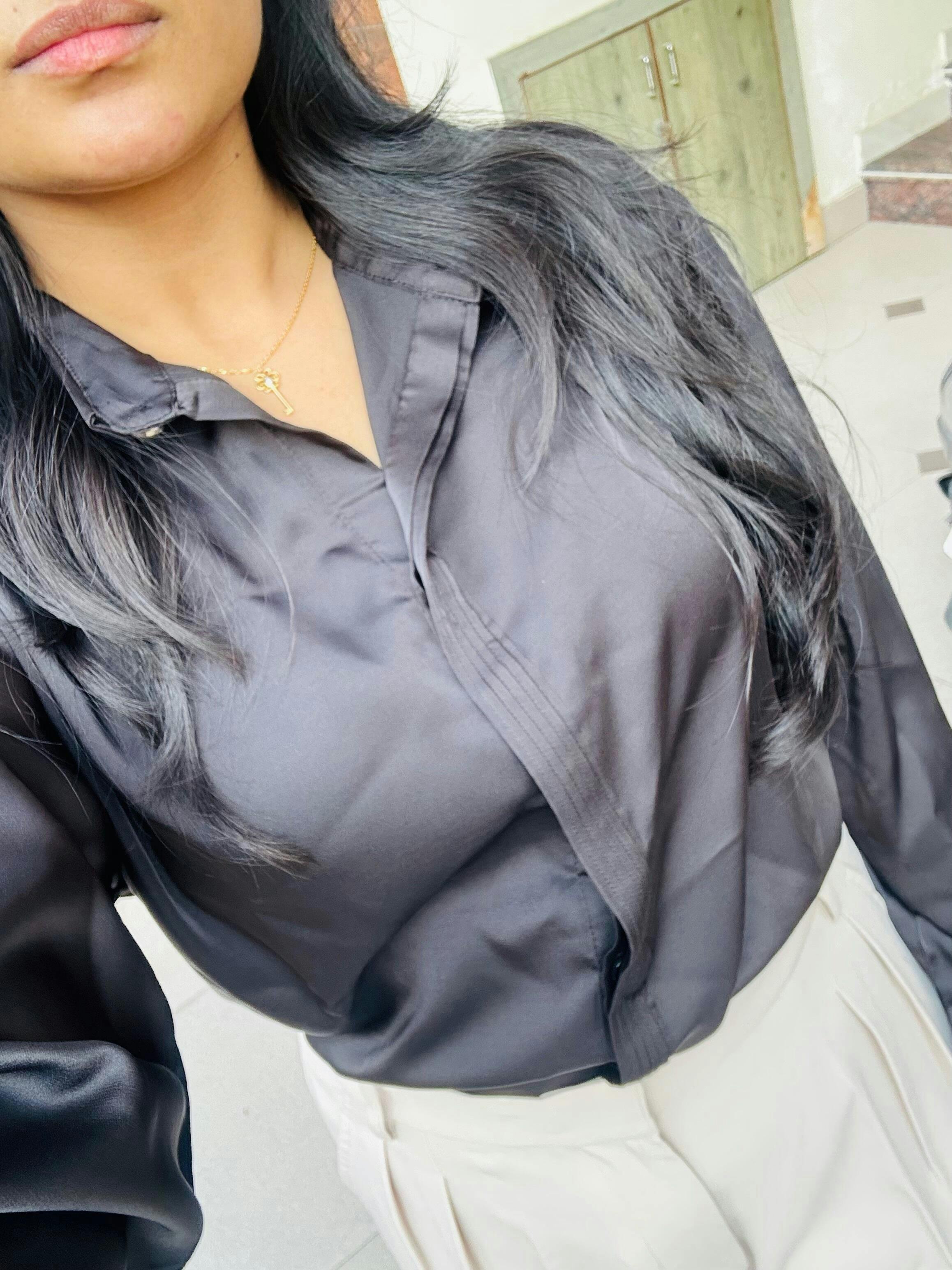Butter Satin Oversized Pintuck Shirt | Raven Black