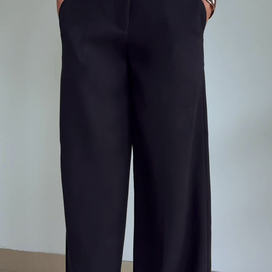 Crepe Wide Leg Trouser | Black Bolt