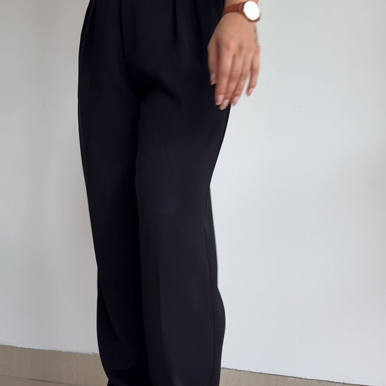 Crepe Straight Leg Pleated Trouser | Black Bolt